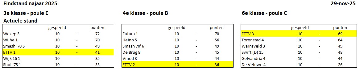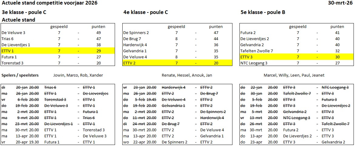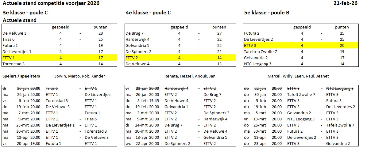 Competitie resultaten